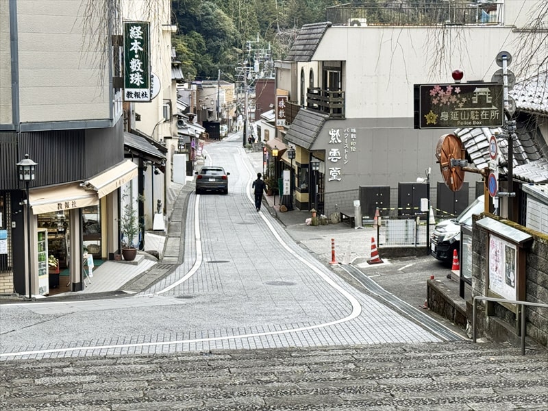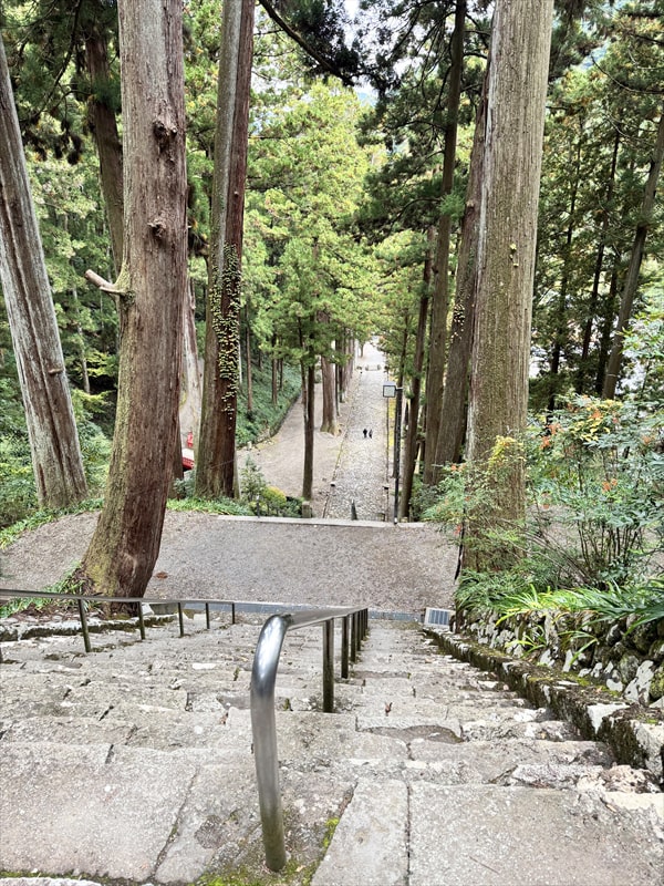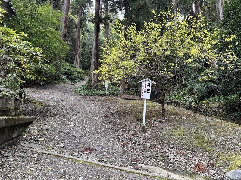 途中で男坂と階段が交わりますので少しだけ男坂を下りましたが、砂利の浮いた下り坂の道も結構大変でした。