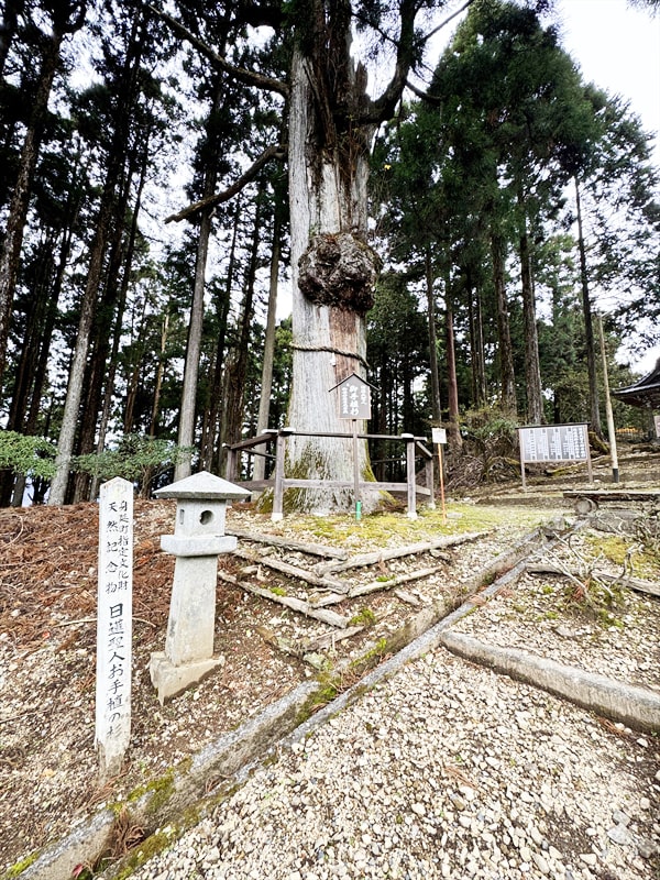 ロープウェイの山頂駅から奥之院思親閣までの参道横には日蓮聖人お手植の杉もありました。