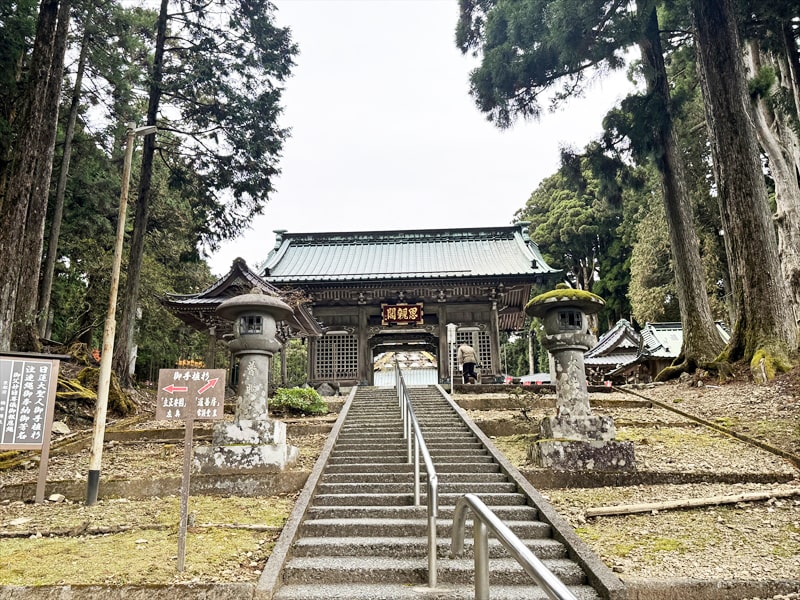 三門の駐車場を停めて菩提梯の階段を上り本堂などを見た後にロープウェイで山頂まで行き、下りて来て再び菩提梯の階段を下って三門の駐車場まで戻った観光の所要時間は2時間30分でした。