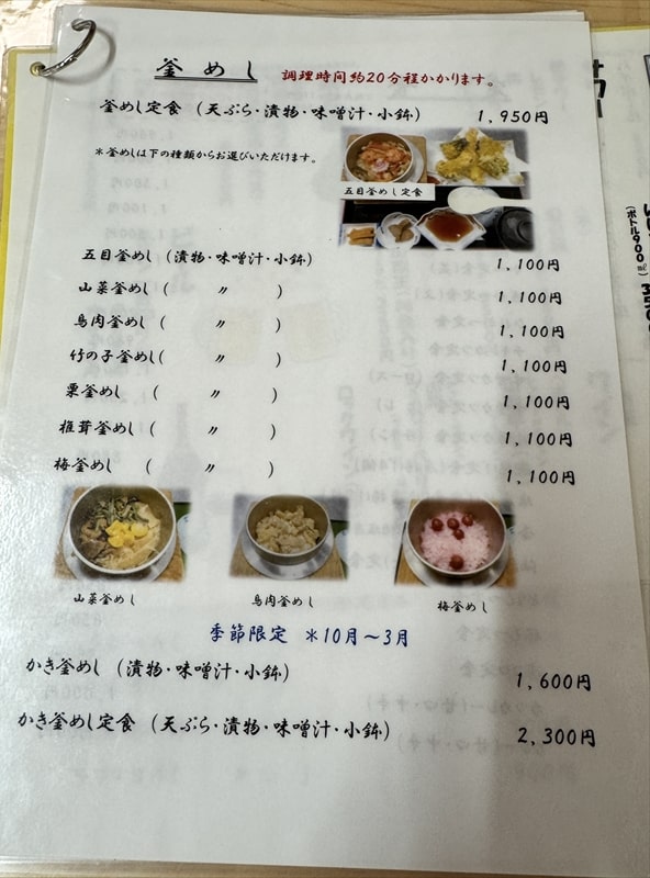 私たちは五目釜飯1,100円と、日本唐揚協会主催の「唐揚弁当グランプリ」で2年連続金賞を受賞した唐揚げも食べたかったので単品で注文しました。(1個140円)