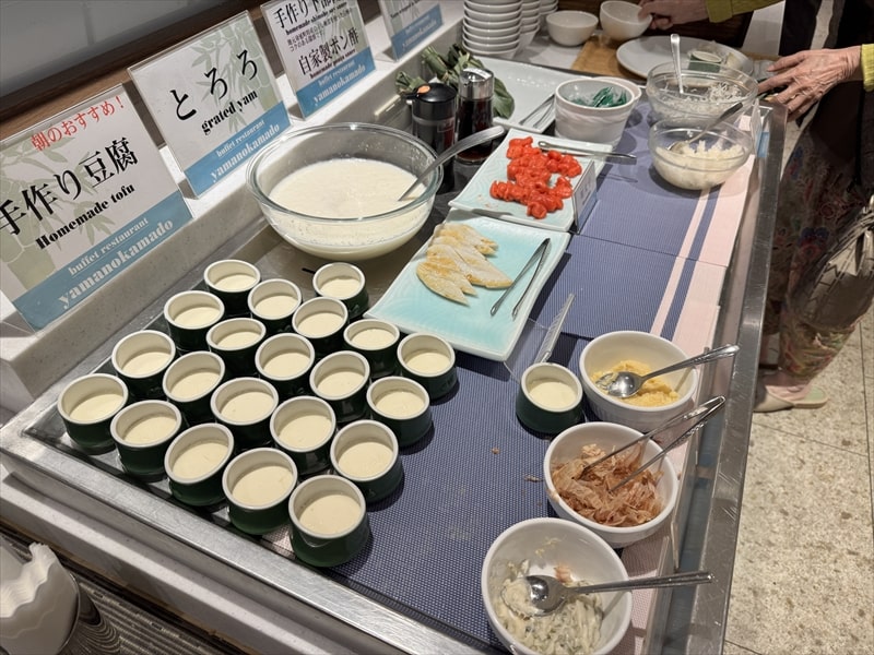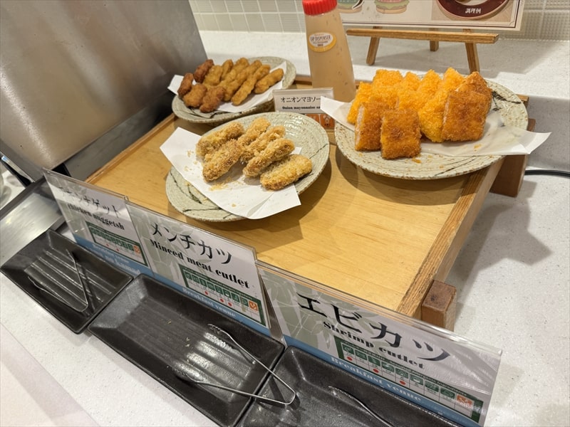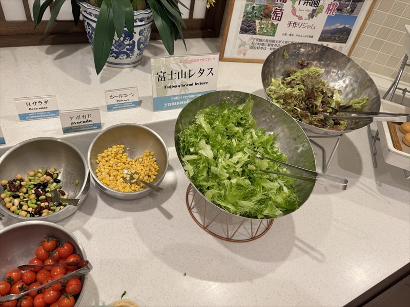 その他の料理はチキンナゲット、メンチカツ、エビカツ、ポトフ、コーンスープ、手作り豆腐、はんぺん、明太子、納豆、ほうとう、味噌汁、ご飯、サラダバー、コーンフレーク、フルーツグラノーラなどとなっています。