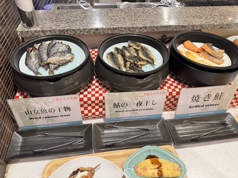 下部ホテルのバイキングの目玉料理と言えば炭火で焼いた山女ですが、こちらも人気が高いのでしばらく無くなってしまうこともありました。