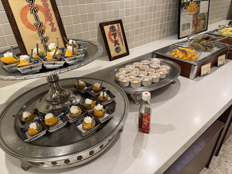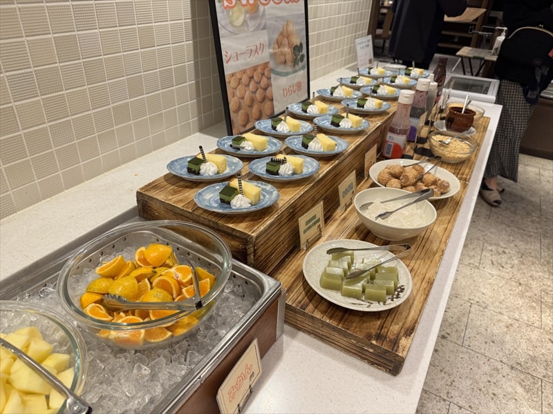 デザートは抹茶プリン、ブルーベリープリン、バナナ、ライチ、パイナップル、オレンジ、グレープフルーツとなっています。