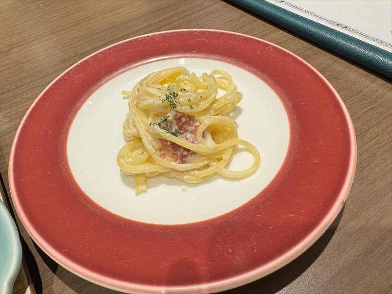 ハードチーズの器の中でパスタと和えたチーズパスタはおかわりがしたいくらい美味しいものでした。