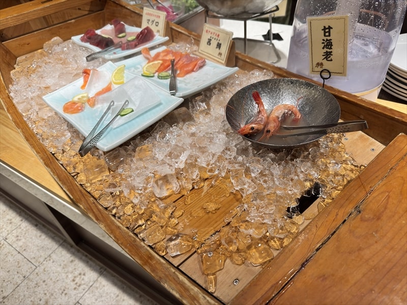 夕食は創作和食会席というプランもあったのですが、最近は量を食べることができなくなってきましたので、会席料理であまり得意ではない椀物や揚物、蓋物を食べるとお腹一杯になってしまうことから料理を残してしまうことが多いので、好きなものを好きな量だけ食べることができるバイキング料理が良いと思いました。