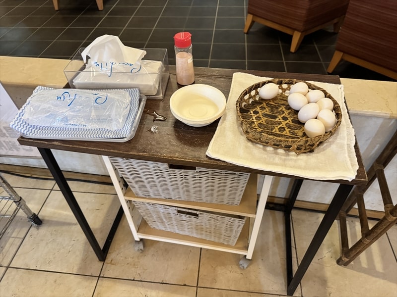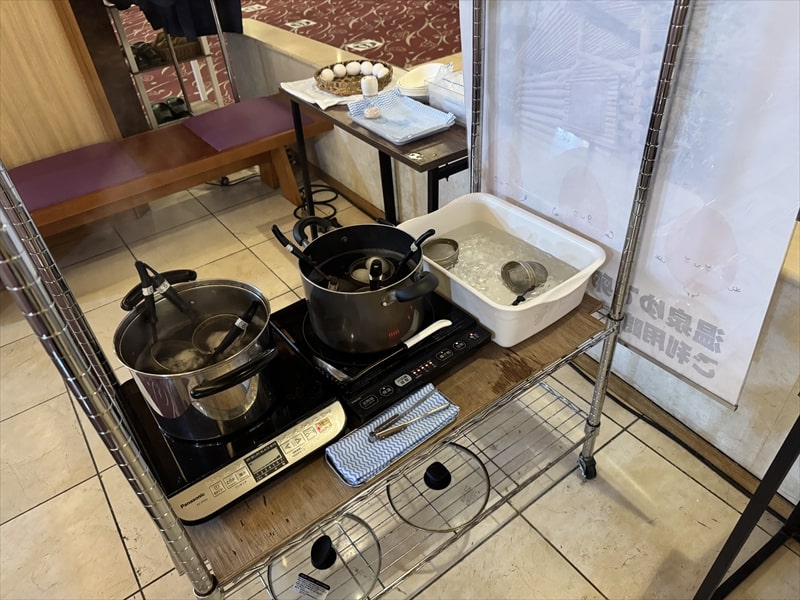 ロビー横にあるラウンジでは無料のゆで卵作り体験が行われていました。