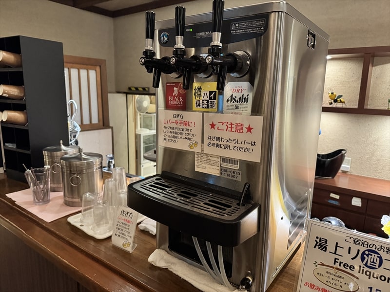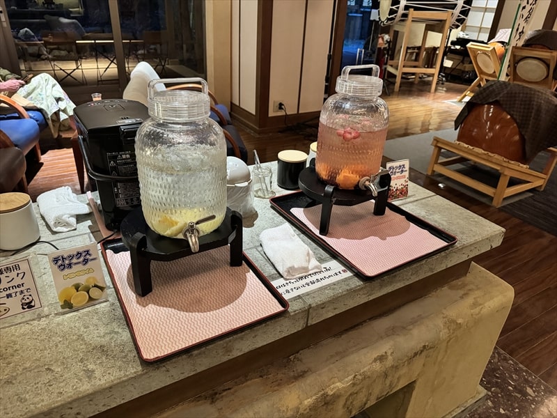 大浴場から出た場所では午後3時30分から深夜12時まで無料の湯上りサービスが行われています。