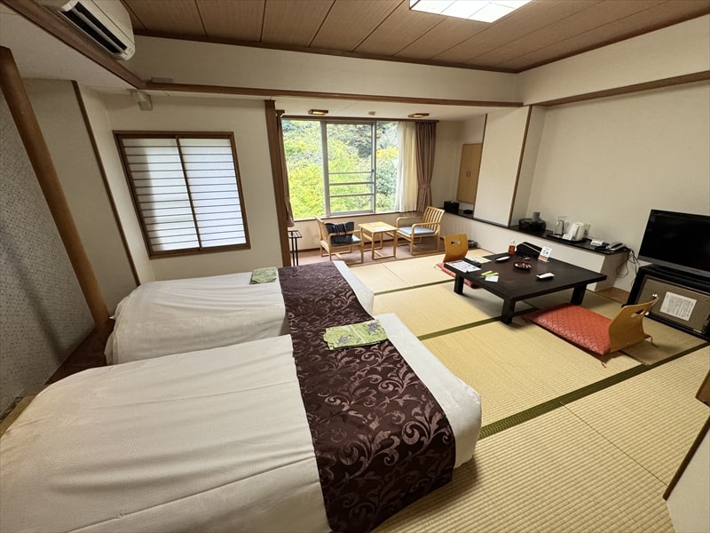 下部ホテルに行こうと思ったのは4日前ですから空いていたのは基本タイプの和室10畳か12畳、和室10畳のローベットの部屋しかありませんでした。