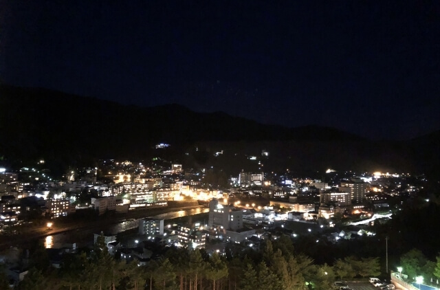 市街地から少し離れた高台の宿からの夜景もきれいです。