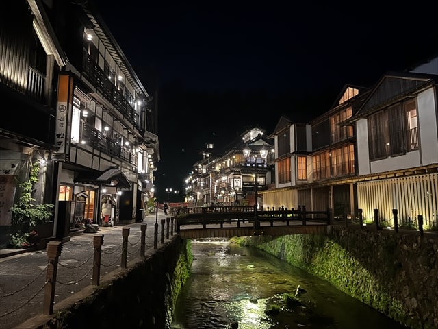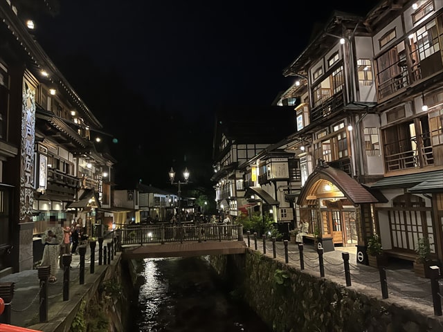銀山温泉にチェックイン後に温泉の入浴を楽しんで浴衣に着替えた後に銀山温泉街を散策していますと、まだその時間でも団体旅行のバッチを付けた方の団体が急ぎ足で観光されている姿を見ますが、やはり銀山温泉の魅力は宿泊されて、ゆっくりと宿泊者しかいない素敵な夜景と、早朝の景色を楽しむことを本当におすすめします。
