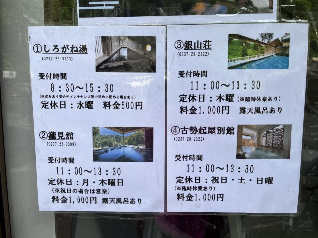 銀山温泉の旅館では私たちが訪れた時には立ち寄り湯を中止していますという宿が多かったので、実際に行かれる際には確認する事をお薦めします。