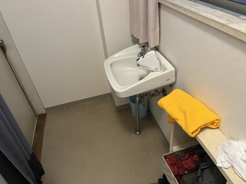 脱衣場には洗面台と脱衣篭しかなく、ドライヤーや化粧品などは男性用にはありませんでした。