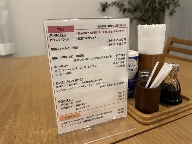 食事の際のワインは勝沼のハウスワインよりも小布施ワインの方がおすすめとのことで、白のシャルドネを頂きました。