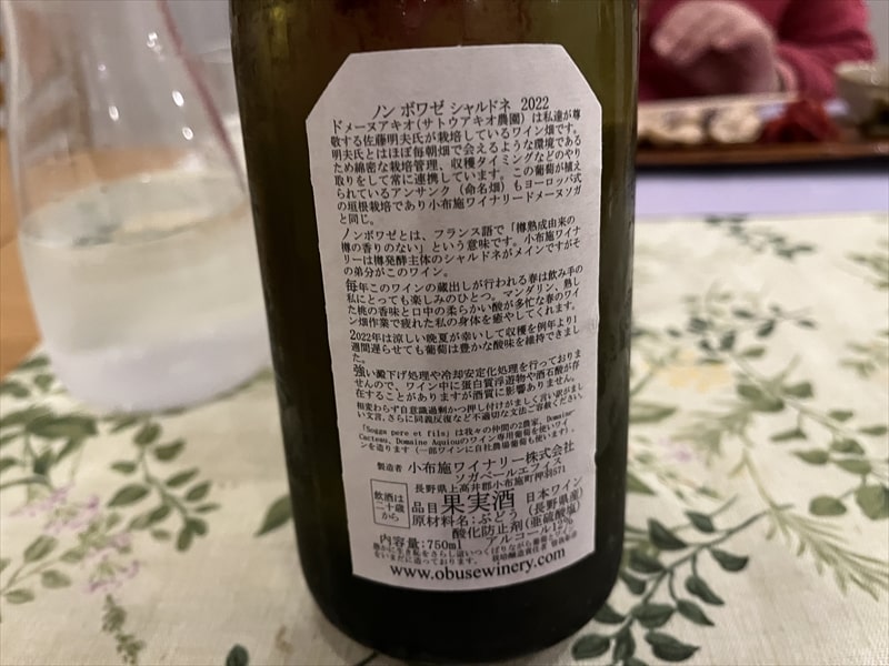小布施ワイナリーのノン ボワゼ シャルドネ2022でした。