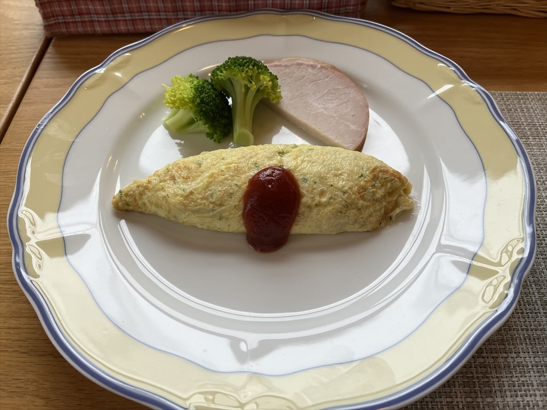 オムレツとハムは焼き立てです。