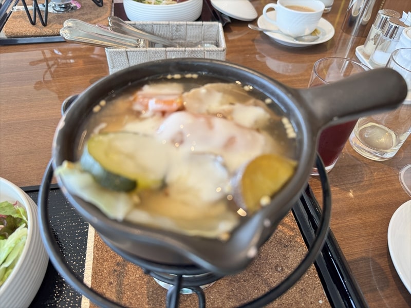 ポトフにはチーズソースをかけて頂いたのですが、キャベツがまだ固かったですし、さつま芋が甘くて好みではないので残してしまいました。