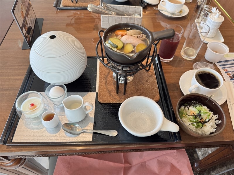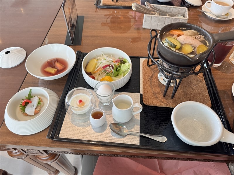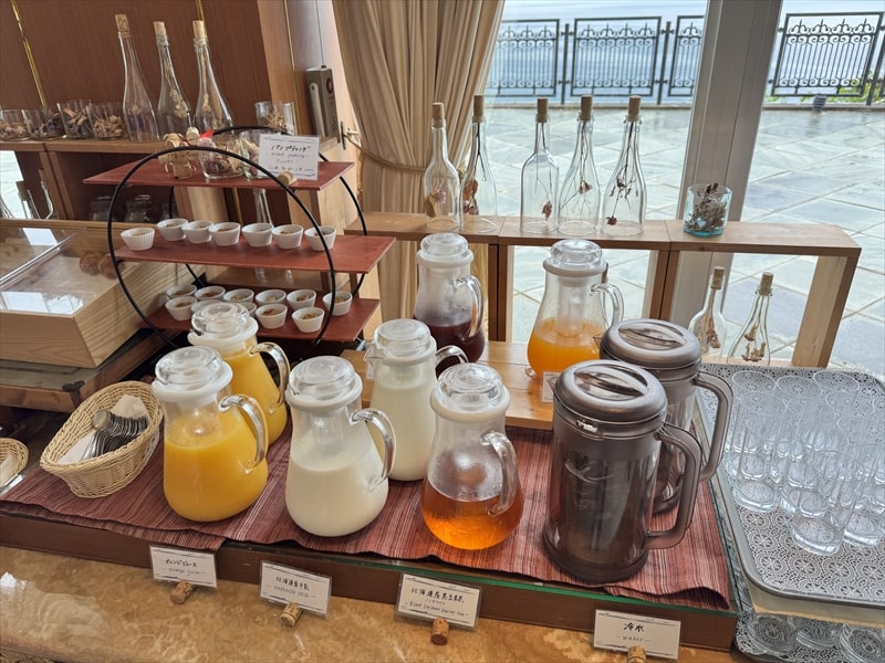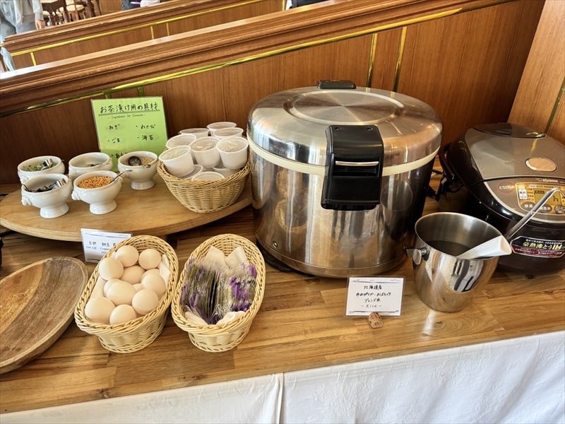 上記の料理の他にハーフビュッフェコーナーがあり、お茶漬けやスパイシースープカレー、パンプティング、ドリンク(オレンジジュース・北海道牛乳・北海道黒豆麦茶など)がありました。