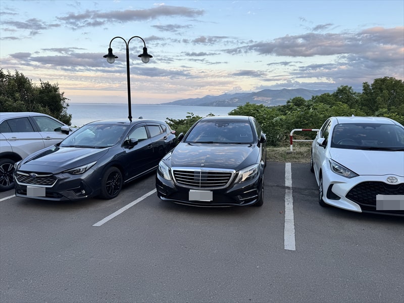 ホテルノイシュロス小樽の駐車場はホテルの建物の正面にありますが、坂道に沿ってありますので場所によっては斜度があってドアを開けるのが大変な場所もあります。