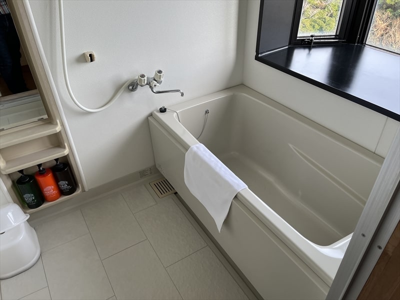 アメニティーも、お部屋のお風呂もシャンプーやリンスやボディーソープが使えるようになっていました。