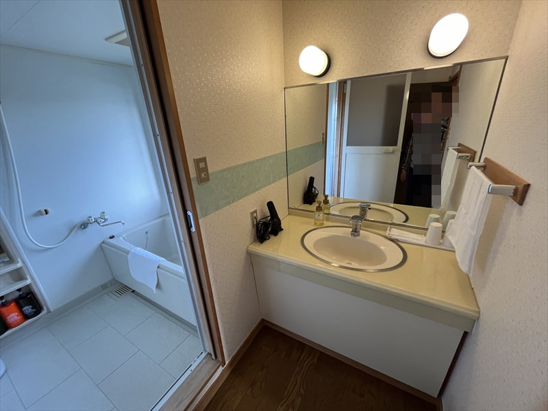 脱衣場の洗面台にはヘアトニック、アフターシェイブローション、ハンドソープ、綿棒などしかありませんので化粧品は使い慣れたものを持って行くのをおすすめします。