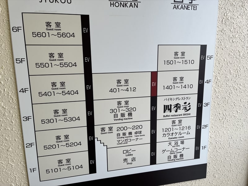 食事の場所は3階の奥にあるバイキングレストランの四季彩でとなります。