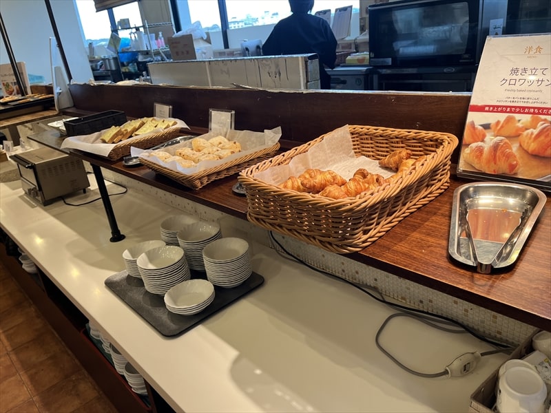 パンはフレンチトースト、クロワッサン、チーズパン、デニッシュがありました。