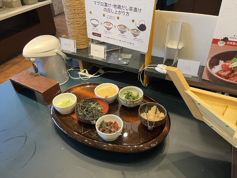 朝食時にはマグロ漬け、地鶏だし茶漬けのコーナーがありました。