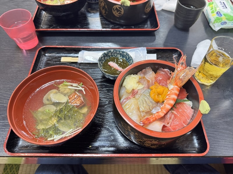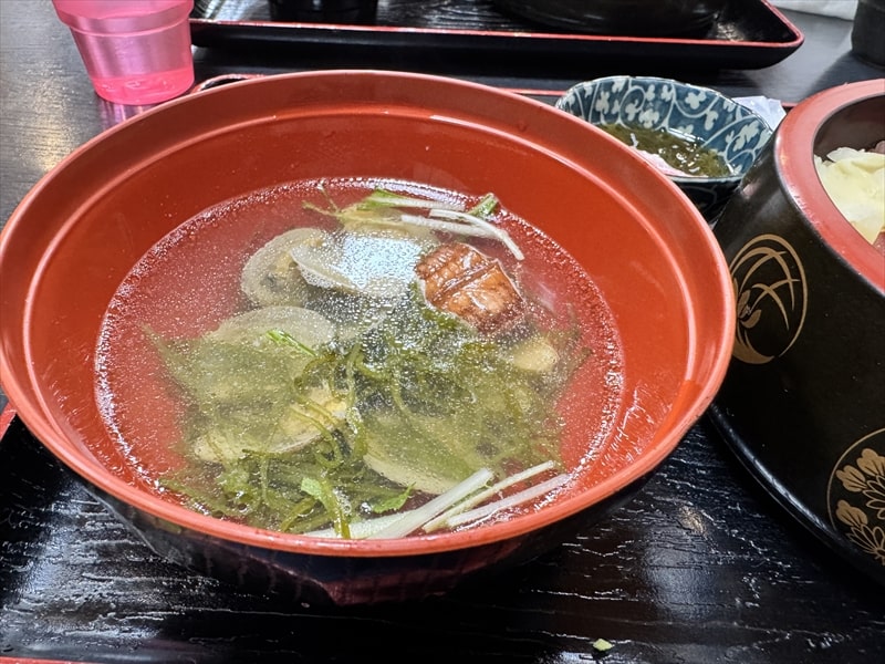 そして付け合せはもずく酢と潮汁(あさり、ヤガラ)となっていました。