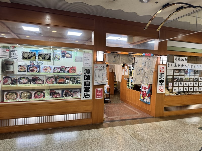 3階にあるレストラン街で海鮮を食べようと思いましたので、えびしま、浜幸、秀丸、味佐々のどの店にしようか迷いました。