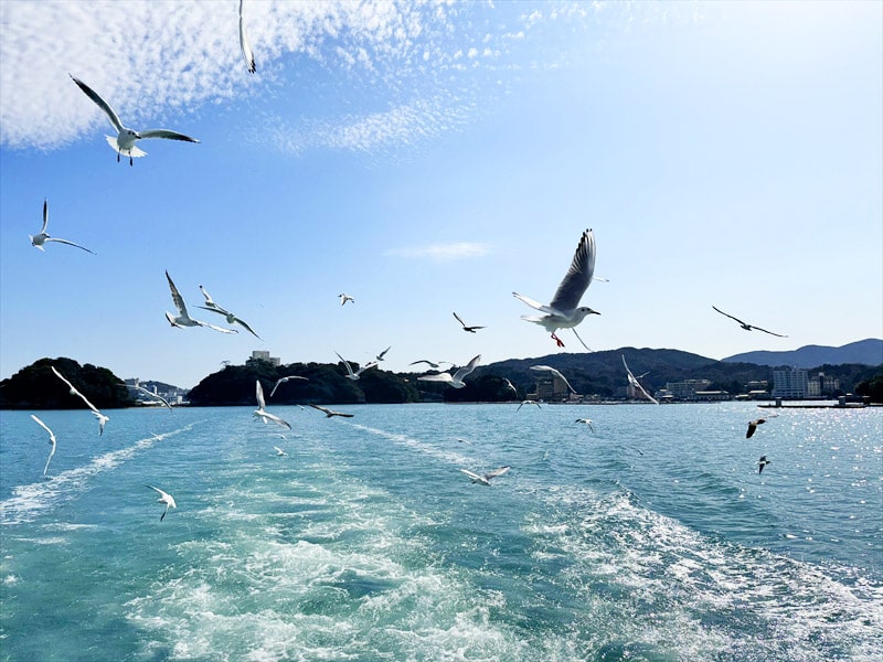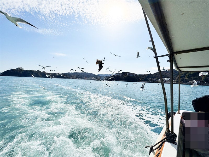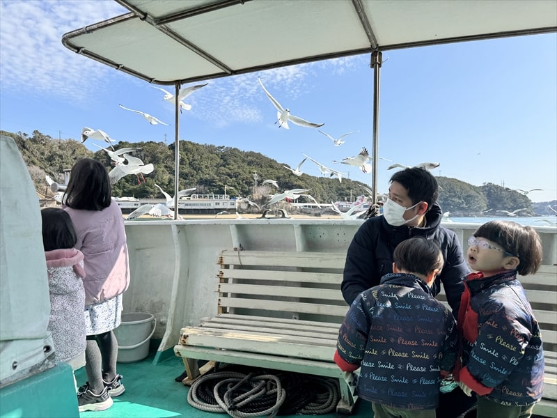 プライベートチャーター船のデッキでのカモメへのエサやりは、子供はとても楽しかったと言っていましたので鳥羽での半日観光ではお勧めです。