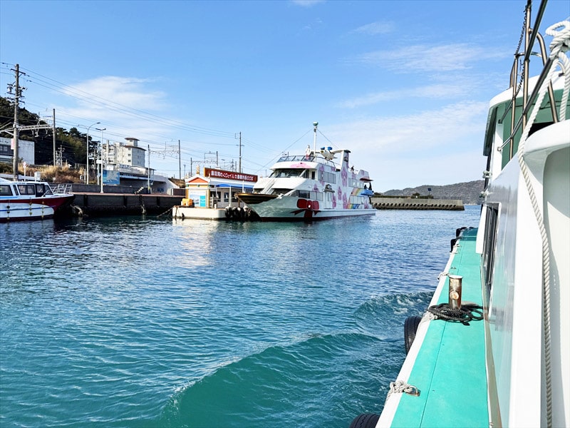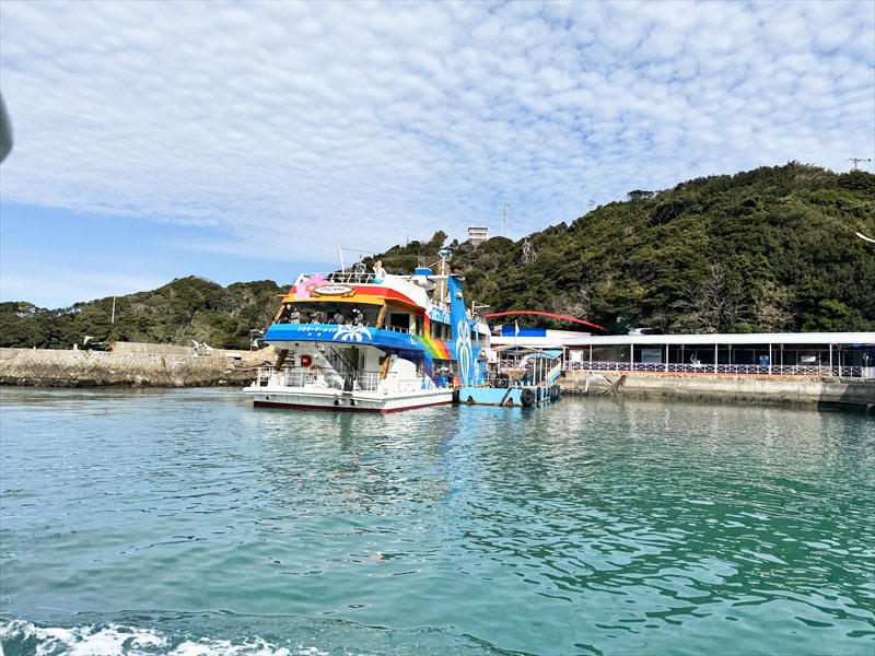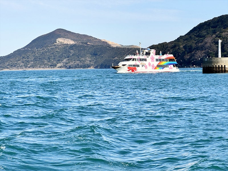 イルカ島には寄りませんので、観光船の横をスルーします。