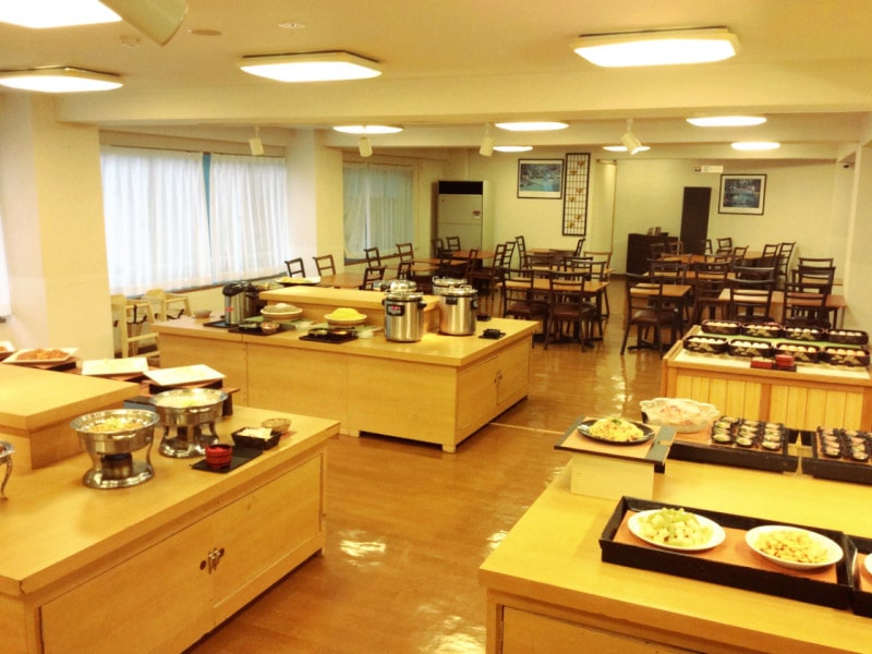 食事は夕食も朝食ともに食べ放題のバイキングとなっていて、本館と別館、松川館のどこに宿泊してもほぼ同じ料理の内容となっていて、もちろん夕食時はアルコール類が飲み放題となっています。