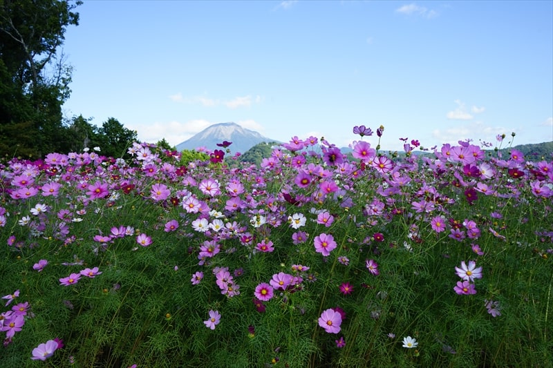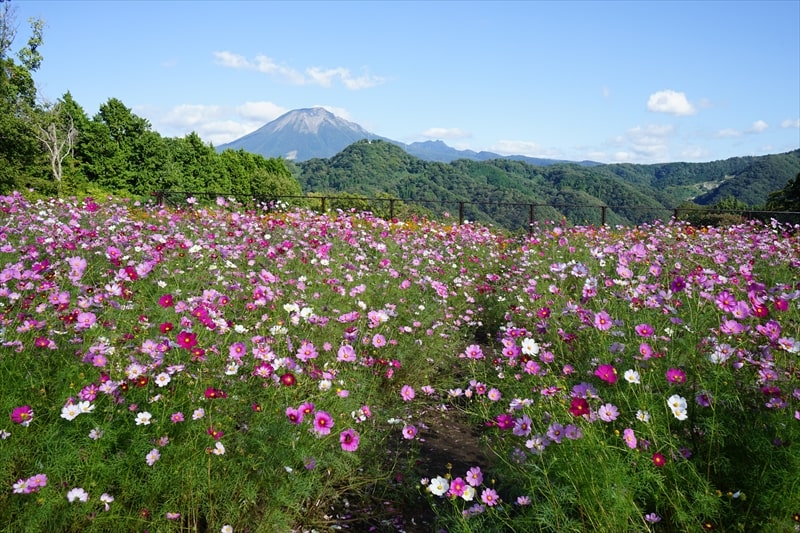 秘密の花園のコスモス畑自体はそれほど広い場所ではありませが、大山をバックのコスモス畑を撮ることができます。