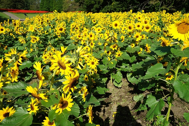 そして夏のイメージがあるヒマワリですが、花の丘近くで種をまく時期をずらされていたので秋に楽しむことができる様になっていました。