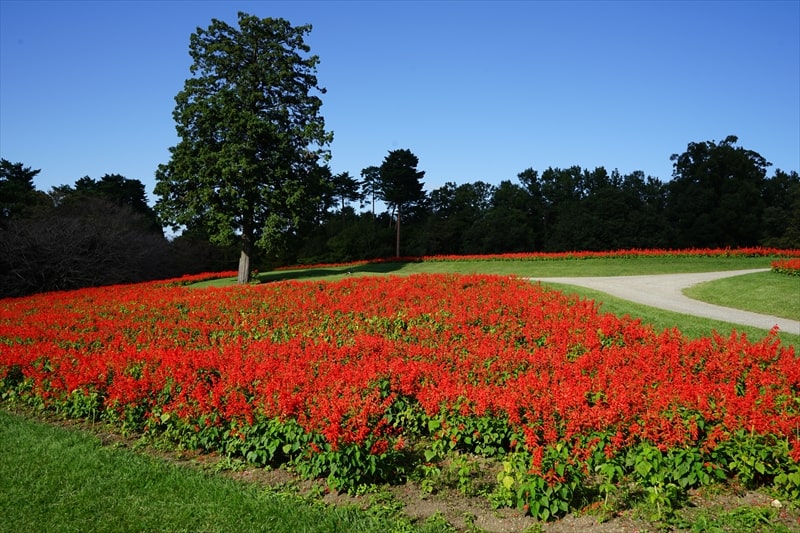 9月から11月中旬にはサルビアとコスモスの草花が広がります。
