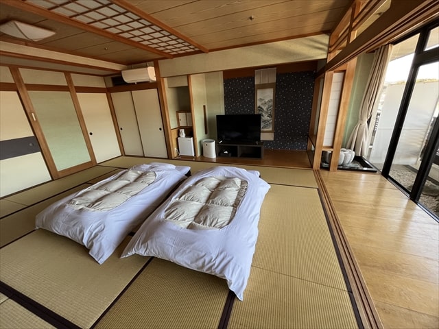当初は15畳の部屋に2組の布団が敷かれていましたが、それぞれの部屋に布団というようにしましたので、とても静かに夜寝ることができました。