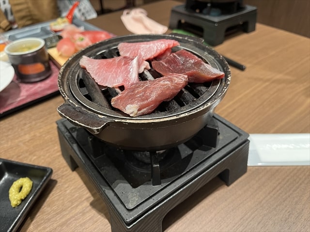 マグロの希少部位三点焼き少し取って味を試してから頂くのが良いかもしれません。