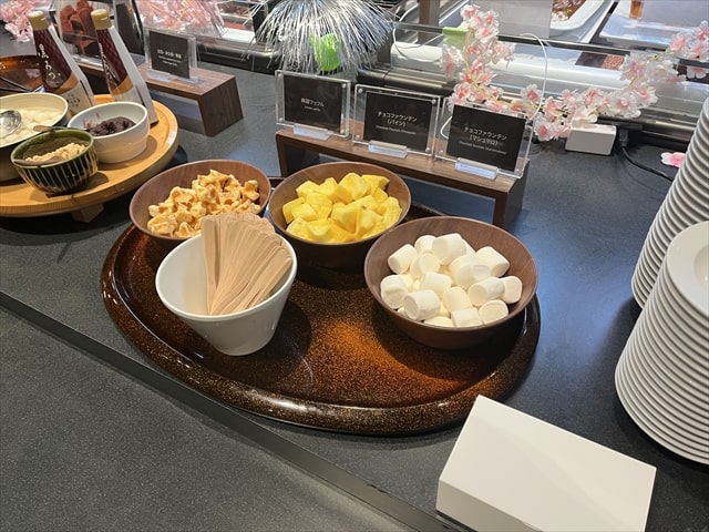 そのため今回は珍しくデザートを頂きましたが、チョコレートファウンテンがありましたので美味しく頂きました。