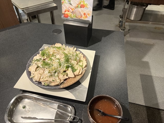 夕食のバイキング料理を見て感じたのは前泊した白浜の彩朝楽と同じような料理が多いなということです。