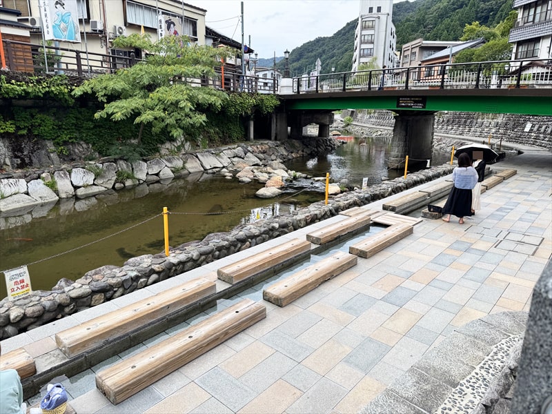 荒湯の横に流れている春来川の岸には無料の足湯があります。