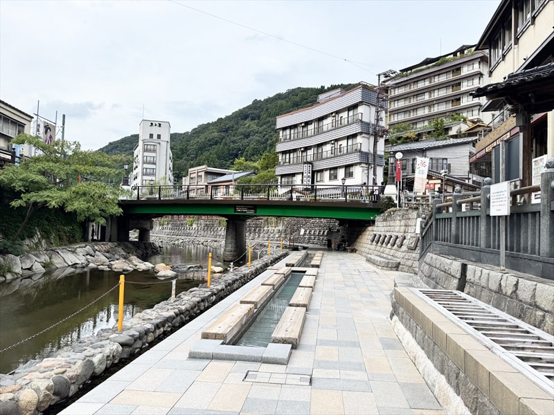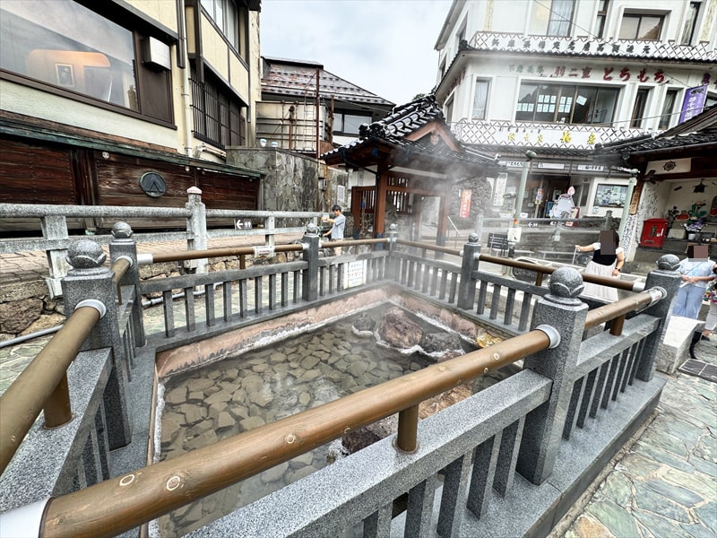 ここが温泉街の中心地で、こちらで全国的にも珍しい24時間湯がきができる施設と足湯などをゆっくり楽しむことができます。