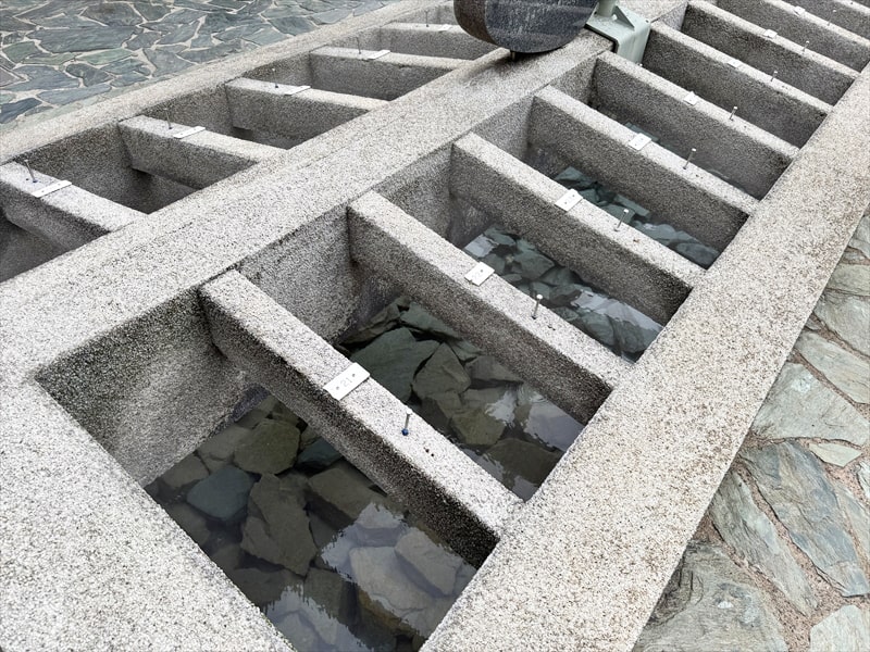 足湯は良いのですが、石造りのベンチに座っていますと高温の温泉による地熱が伝わってきて汗をかいてしまうほどでした。