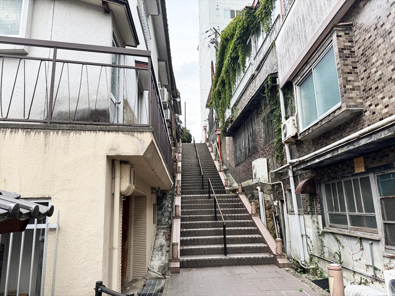 朝野家には湯村散策マップが置いてあり、それをもらって荒湯まで階段を下って行きましたが、とても急は階段の道でしたし、階段の1歩が大きいのでとても上り下りしにくい階段となっていました。