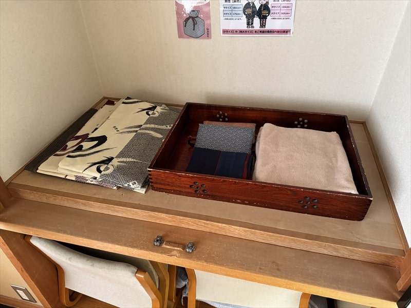 タンスにはバスタオルと浴衣、帯、羽織が入っています。