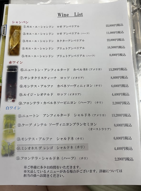 4,400円なのですが料理の味を邪魔しない優しくてすっきりした味でした。