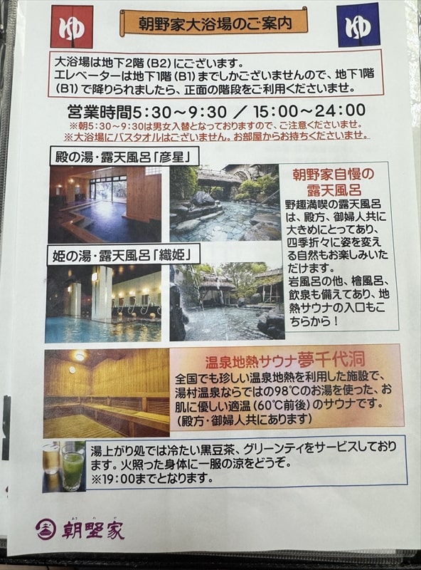大浴場は内風呂と露天風呂、サウナがあるものが2か所あり、時間によって男女の入れ替えが行われていました。