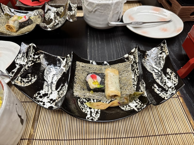 海老の揚げ寿司と鰻のパートフィロ揚げです。