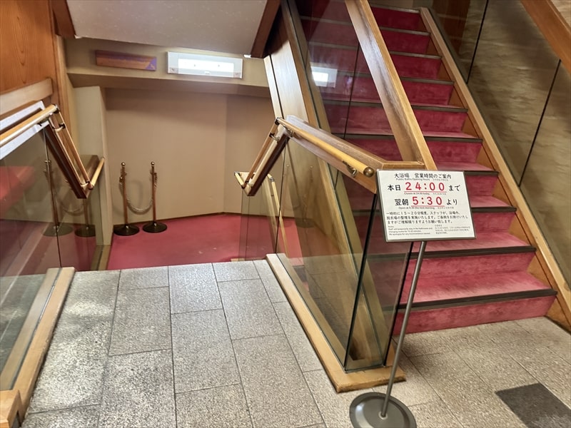 大浴場は地下2階なのですが、エレベーターが地下2階までしかありませんので地下1階から2階までは階段を下りなければなりません。
