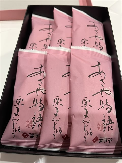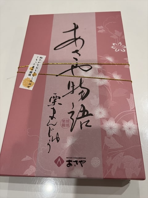 宿泊したあさやホテルで購入したお土産の栗まんじゅうです。