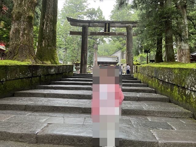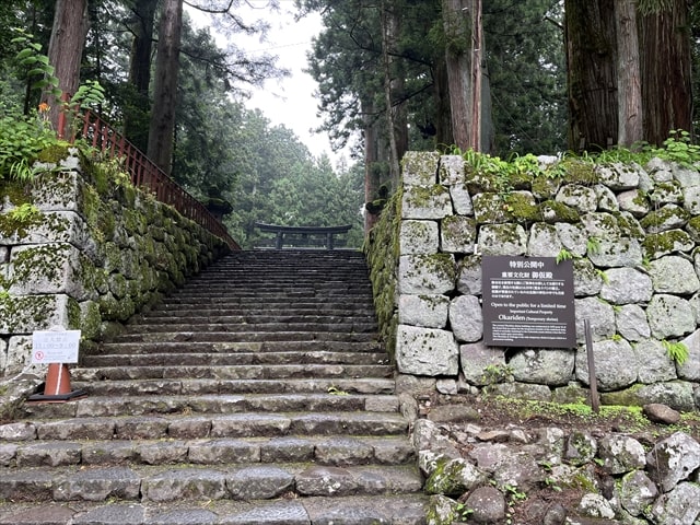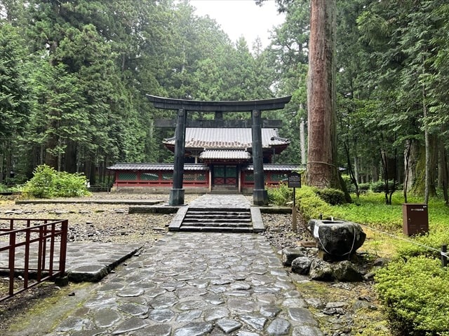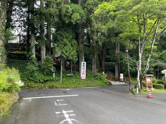 日光東照宮宝物殿と御仮殿の間の道を通れば300メートルほどで石鳥居近くに出ます。